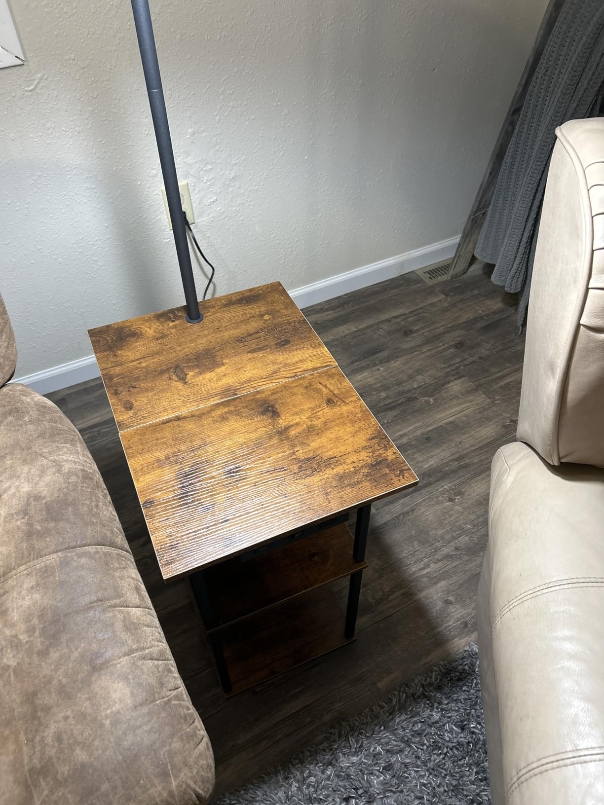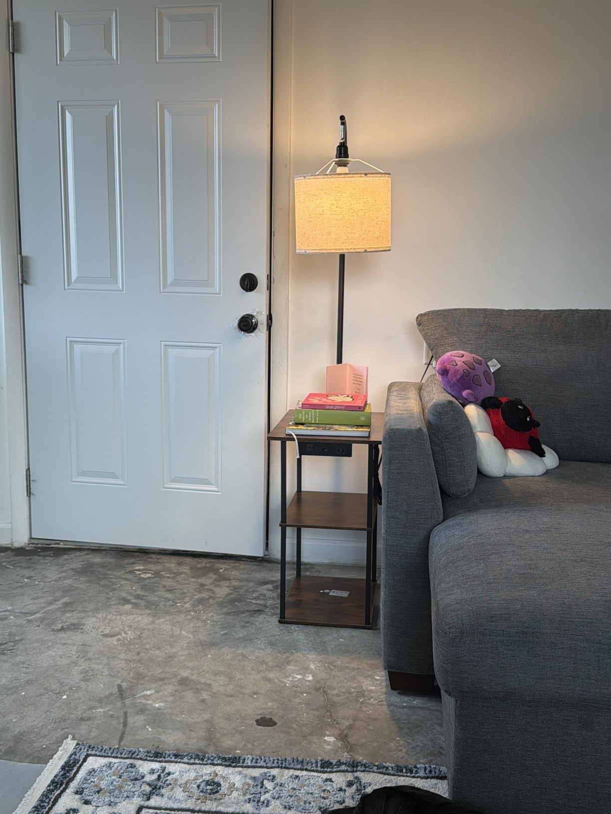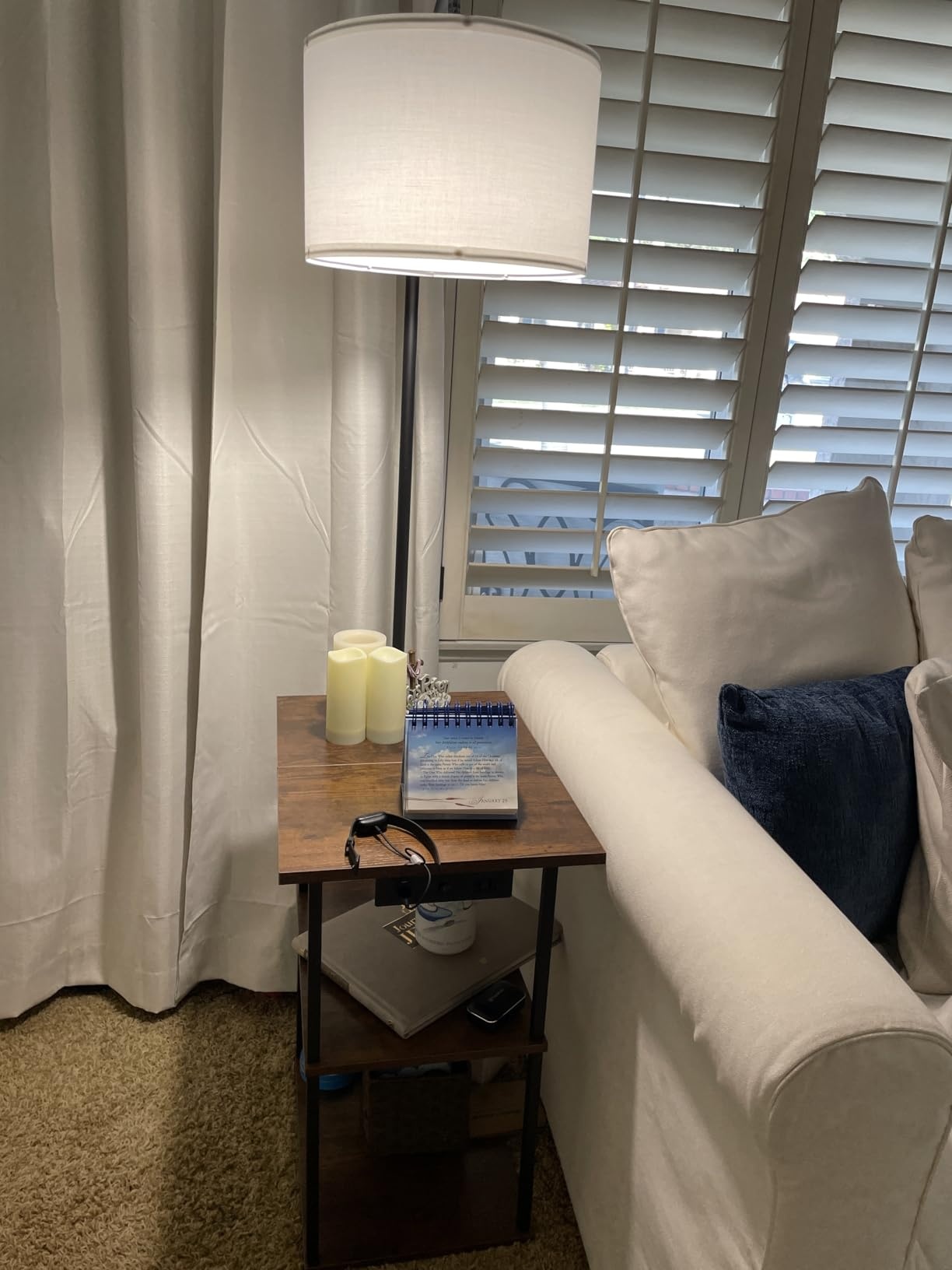 The Floor Lamp with Table and Charging Station is perfect for my bedroom – the USB and Type-C ports charge my phone and tablet overnight right beside the bed. The 3 color temps are great; warm for reading before sleep, bright for getting ready. Shelves hold my books and water perfectly. Easy assembly, sturdy build, and the matte black looks sleek. No more tangled cords or dark corners – love it!